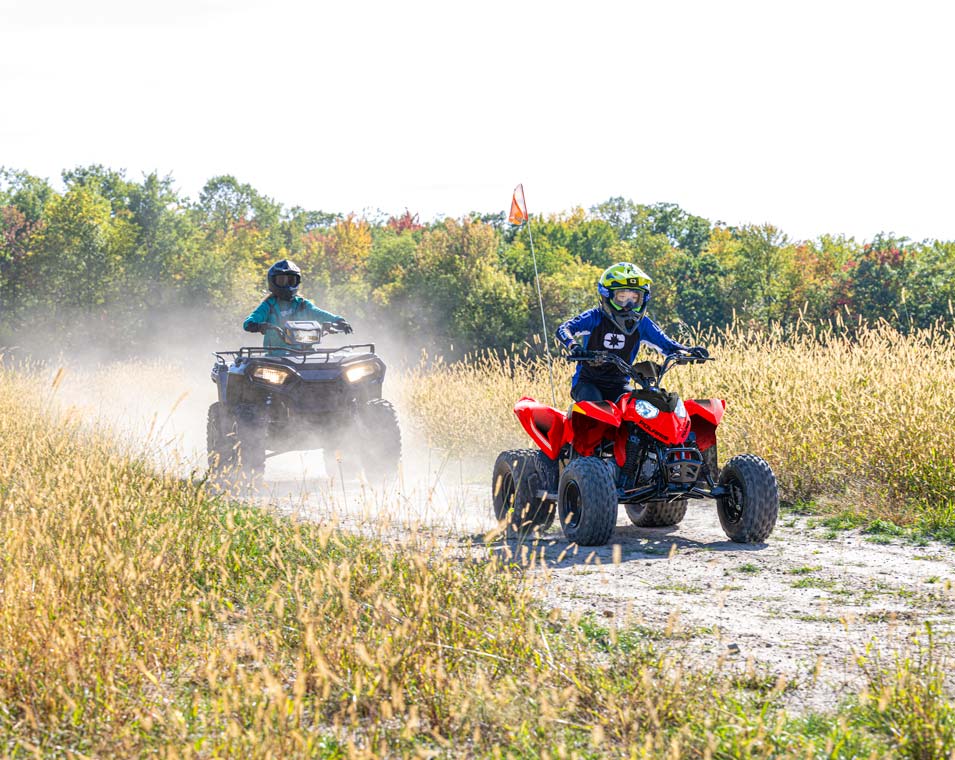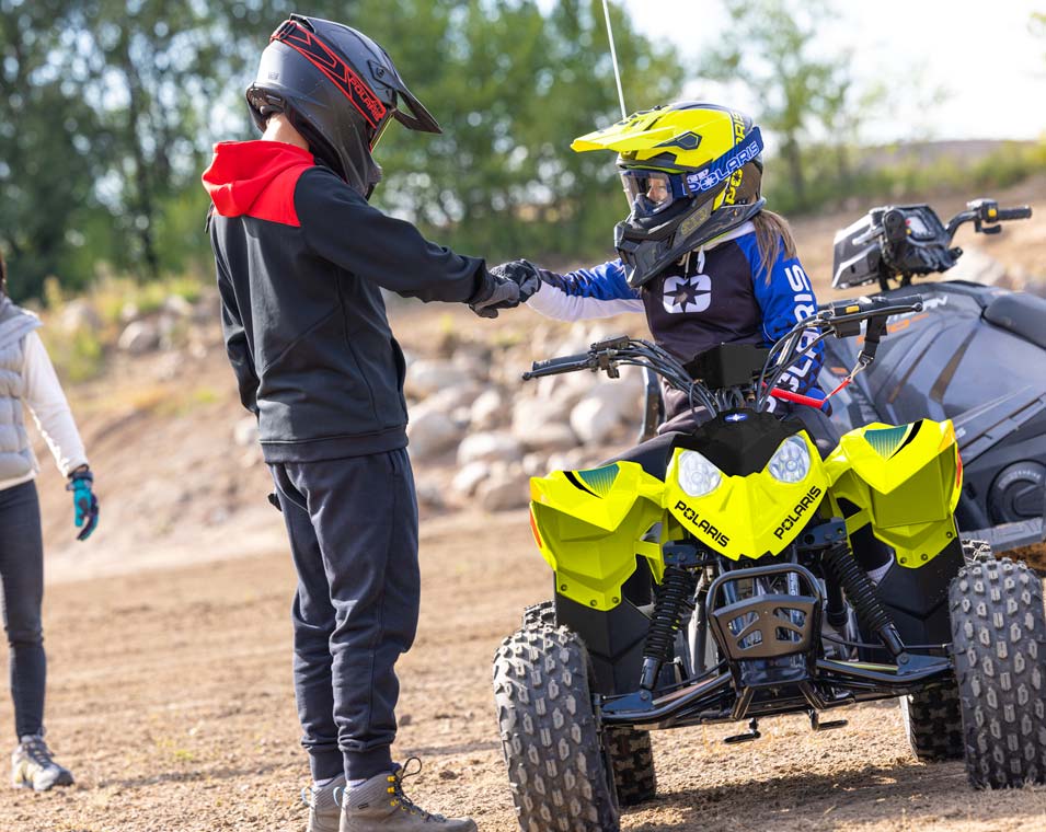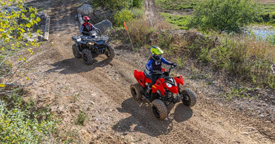 Mit einem 110-cm³-EFI-Motor und Zubehör, damit junge Fahrer mit ihrem Quad mitwachsen können. Hergestellt für Fahrer ab 10 Jahren.