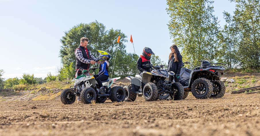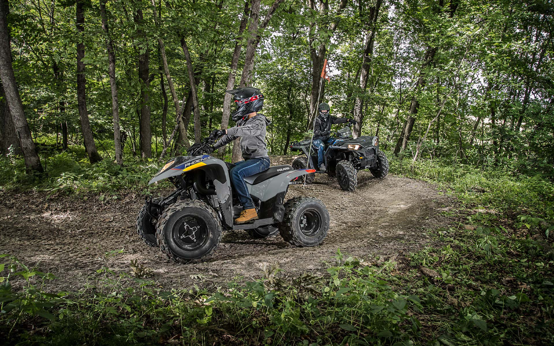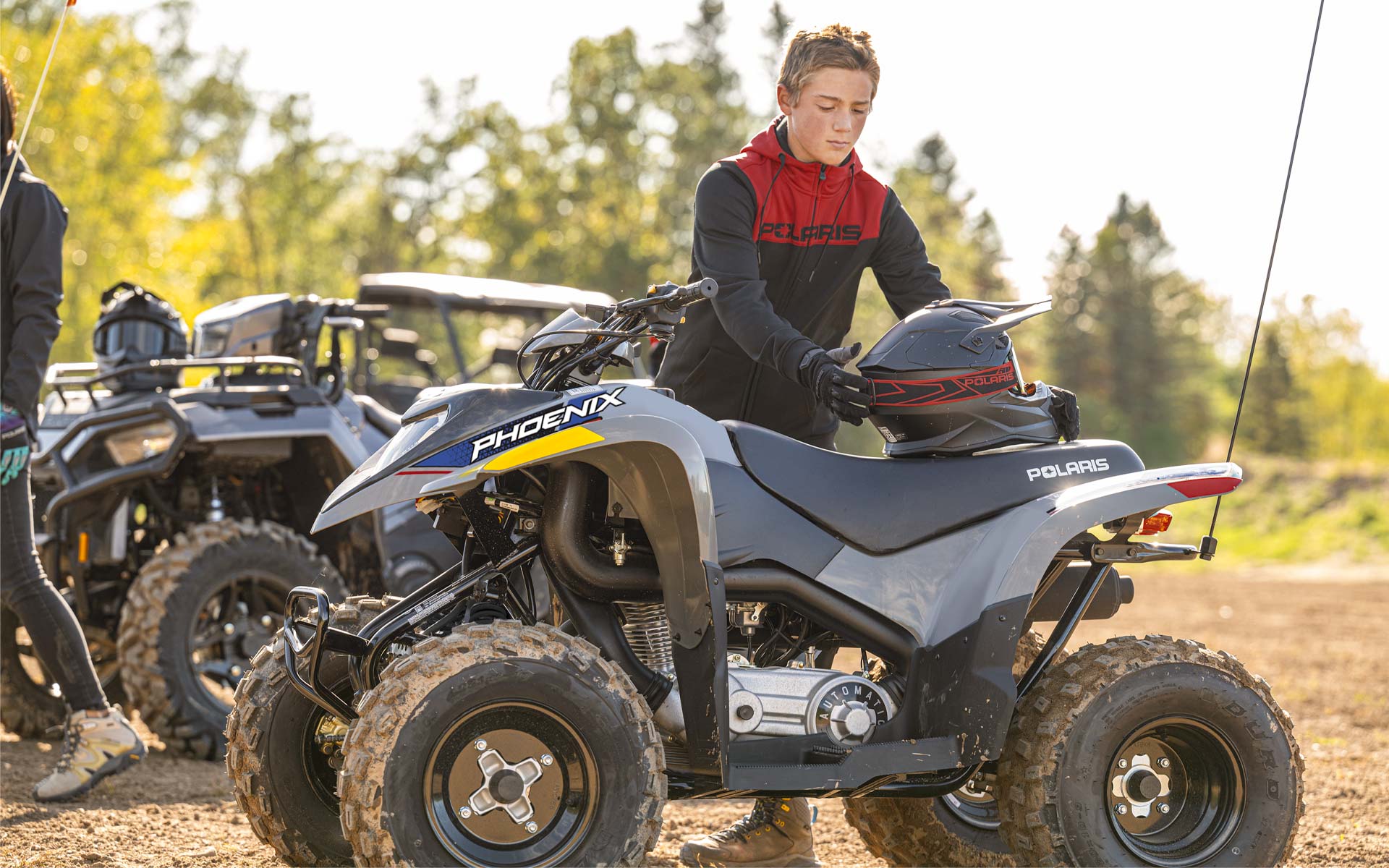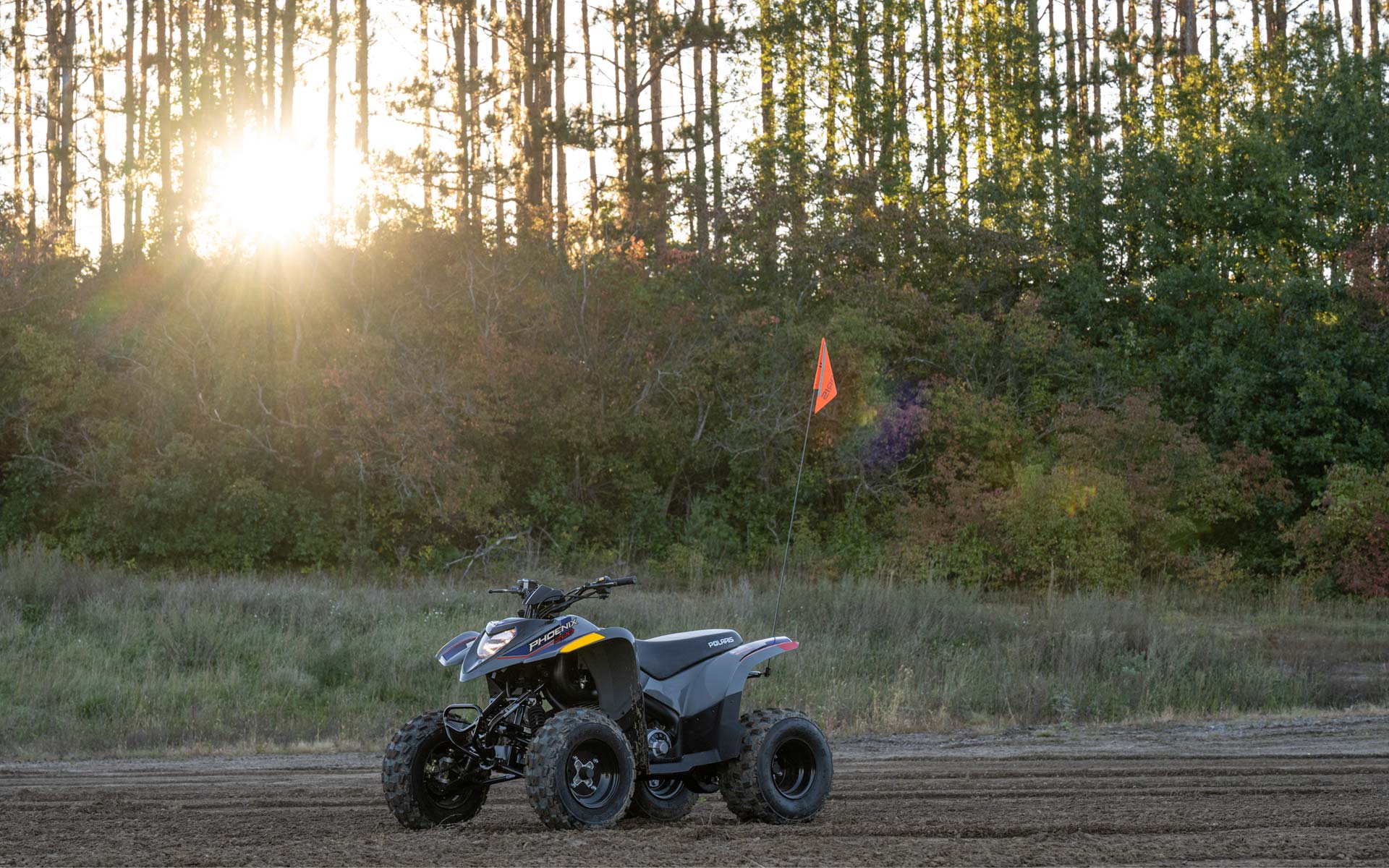 Mit einem 196-cm³-4-Takt-Motor und einem leicht einstellbaren Geschwindigkeitsbegrenzer können jüngere Fahrer mit ihrem Quad mitwachsen. Hergestellt für Fahrer ab 14 Jahren.