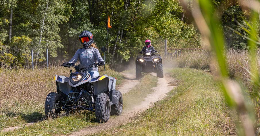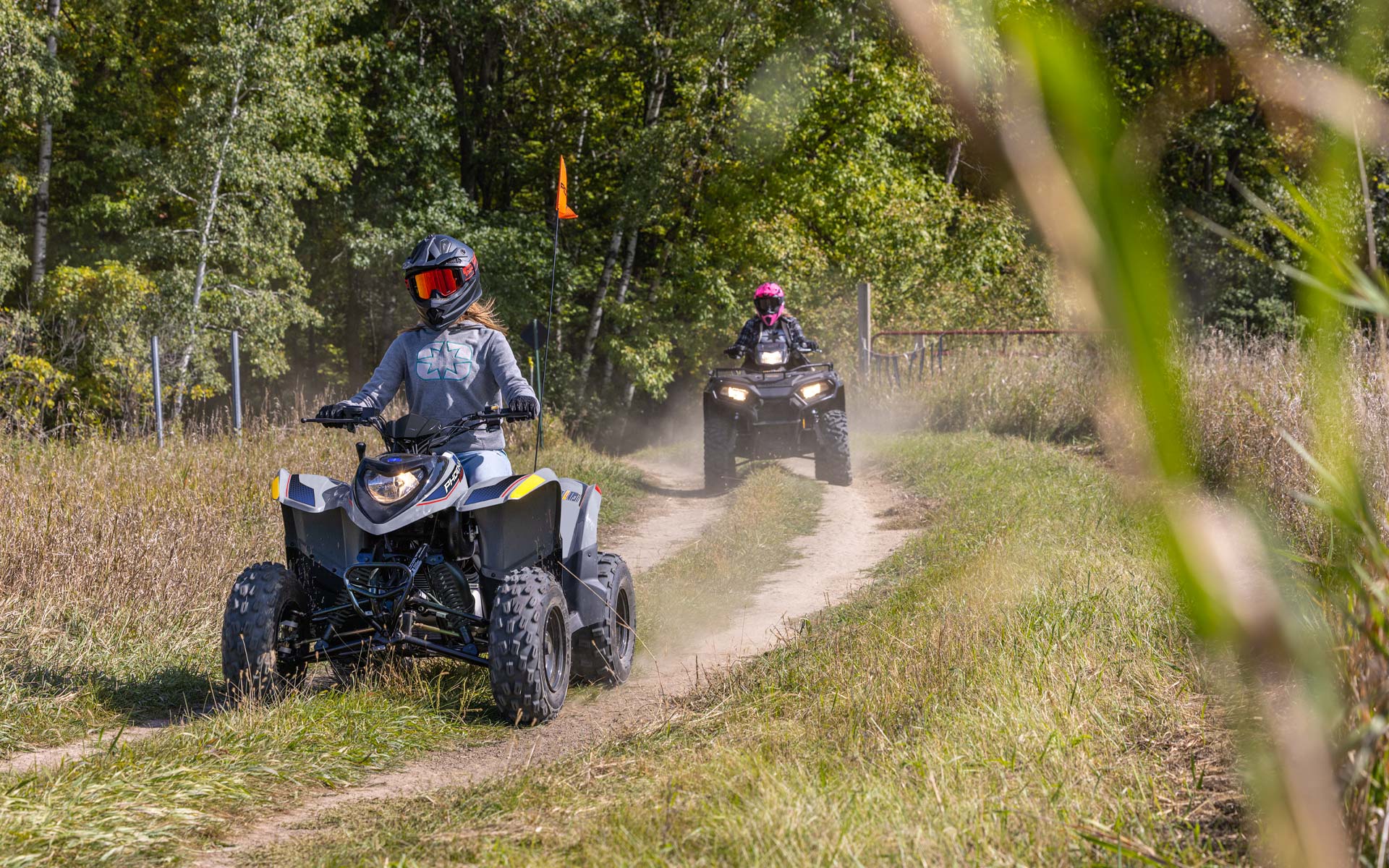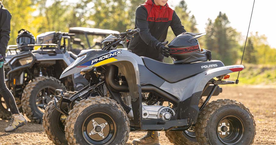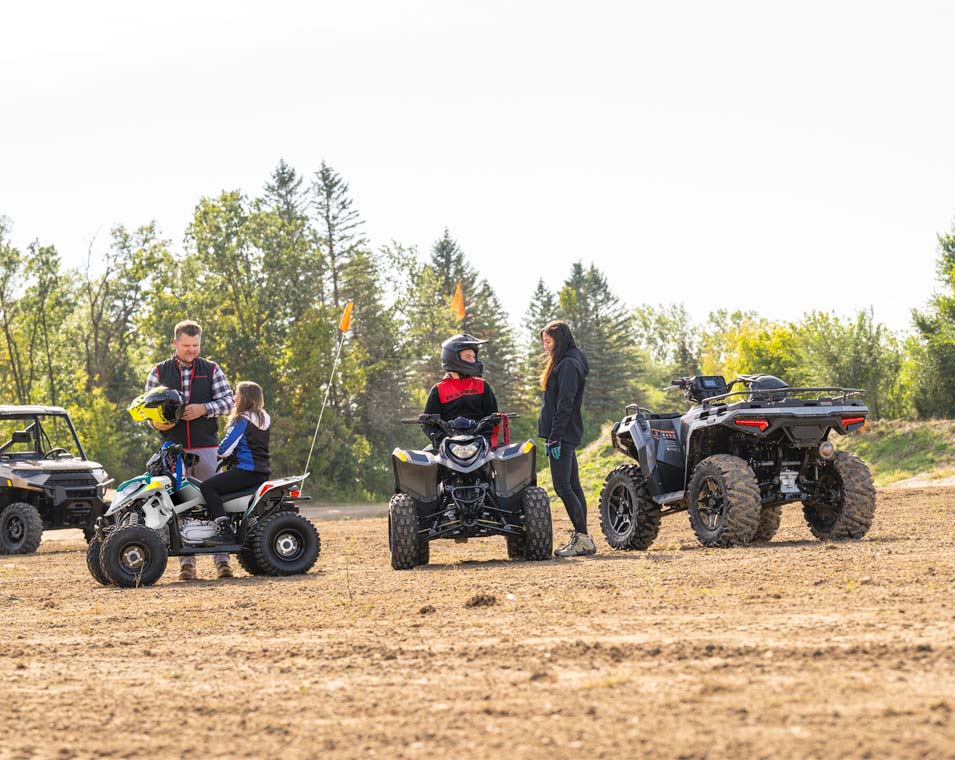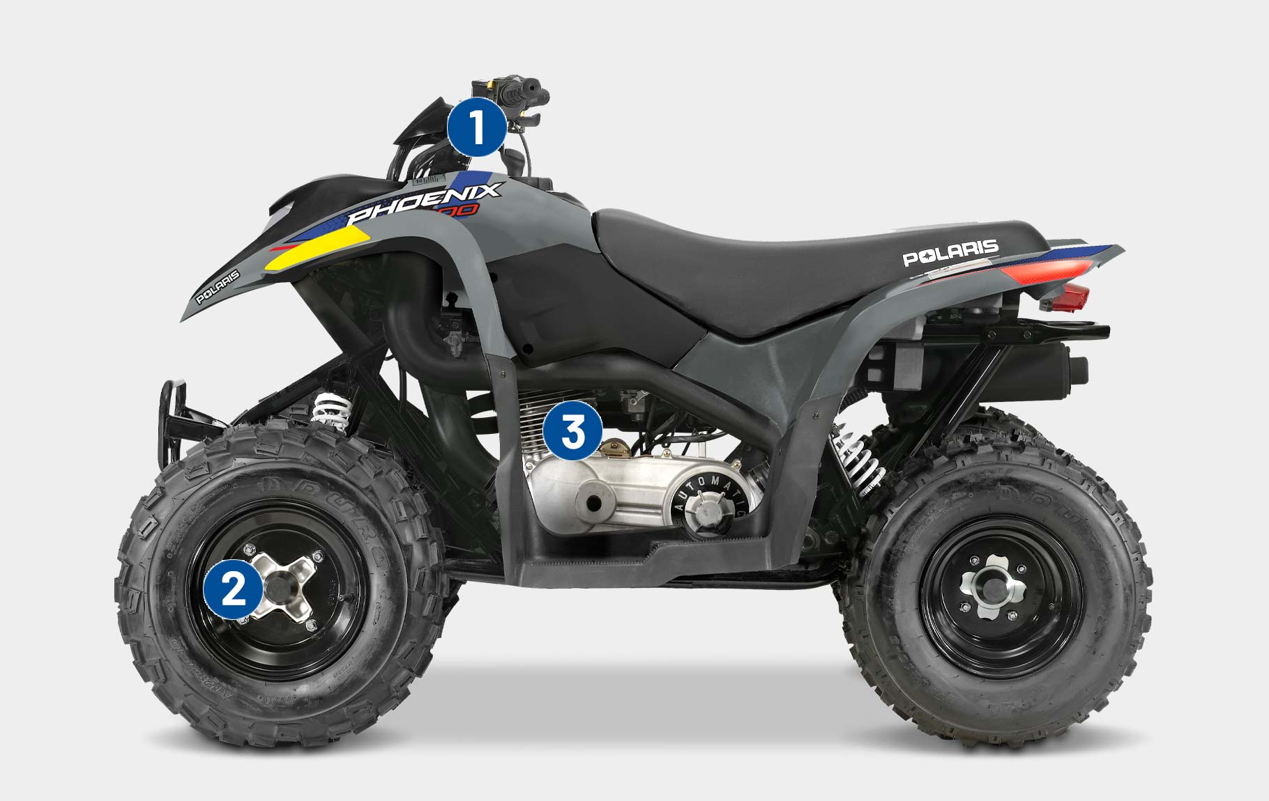 Mit einem 196-cm³-4-Takt-Motor und einem leicht einstellbaren Geschwindigkeitsbegrenzer können jüngere Fahrer mit ihrem Quad mitwachsen. Hergestellt für Fahrer ab 14 Jahren.